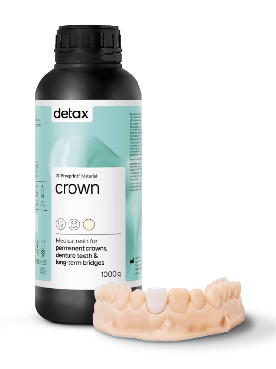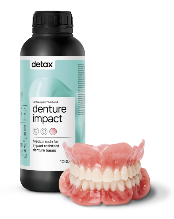 nueva resina premium para prótesis dentales completas impresas en 3D. Certificada por MDR y disponible ahora. Su alta resistencia a la rotura, su procesamiento suave y su baja absorción de agua garantizan una larga duración y estabilidad del color.