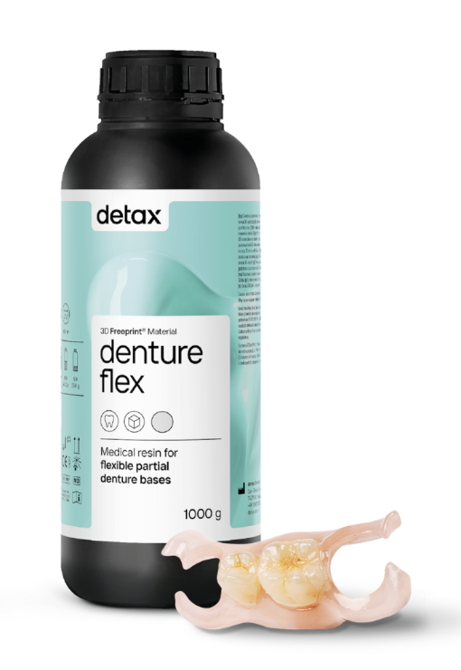 Resina biocompatible, fotopolimerizable y con certificación MDR para la impresión 3D de bases de prótesis removibles. Experimente un nuevo nivel de comodidad con dx denture flex. Sin ganchos metálicos, la impresión 3D precisa y la fina estructura del material garantizan un ajuste perfecto y un aspecto natural. Ahorre tiempo eliminando el fresado y el moldeo por inyección, y benefíciese del uso sostenible de materiales y de costes inmejorables, todo ello sin comprometer la calidad. Disponible en dos tonos para integrarse a la perfección con el color natural de las encías.x